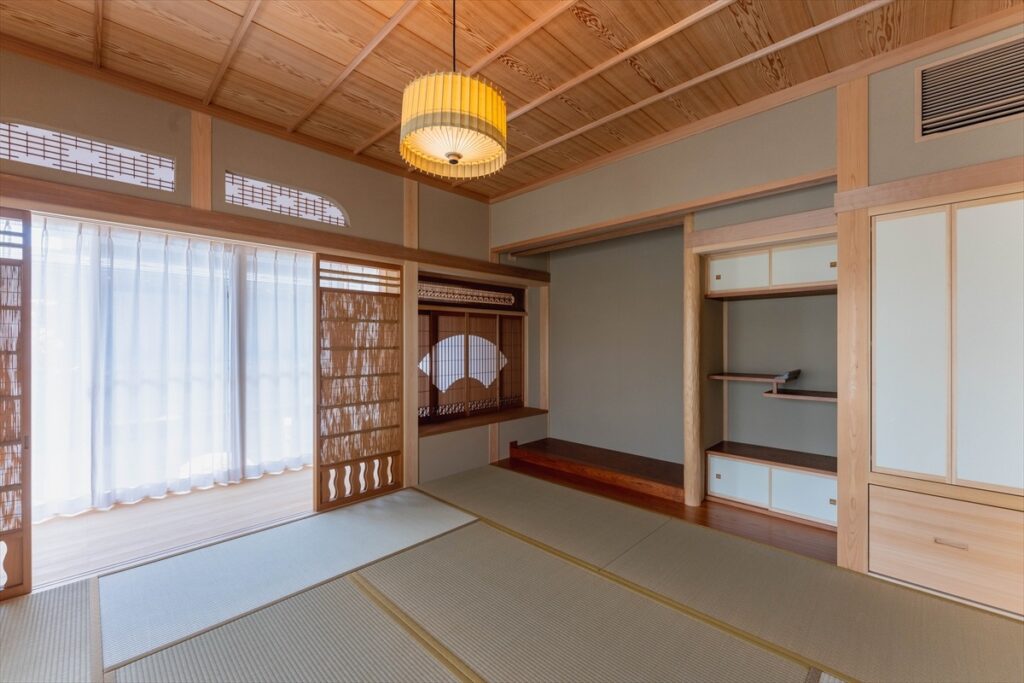 ご実家から引き継がれた欄間や建具、そして葦戸を大切に活用し、現代のライフスタイルに合わせながらも、その美しさを保っています。