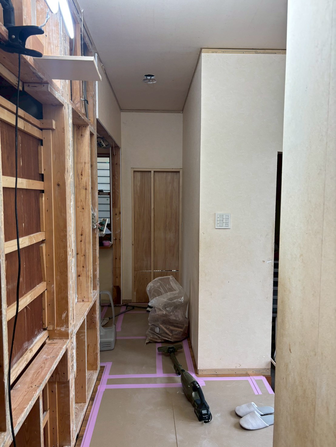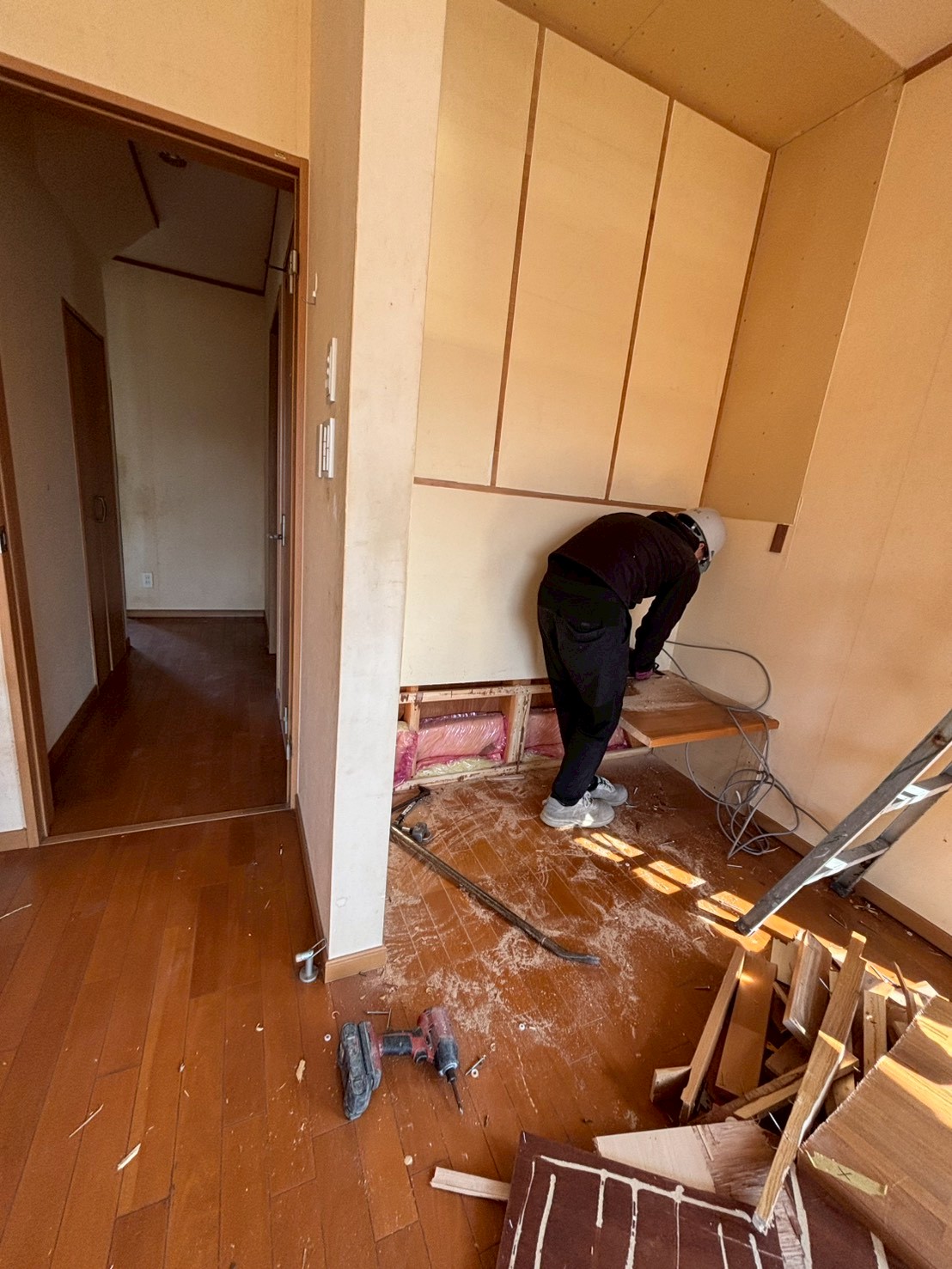 解体工事がスタートしました。キッチンの位置が変わりますが、間取りは大きく変わらず。既存を生かすところが多いので、手で少しずつ丁寧に解体していきます。 -