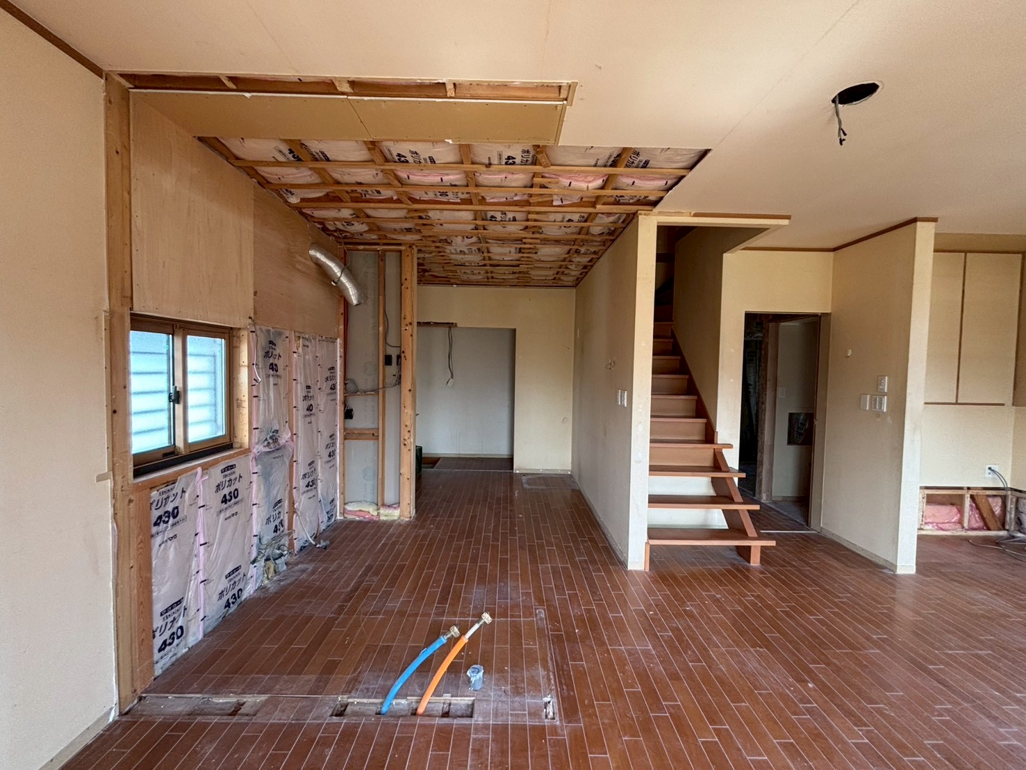 今回の工事では塞ぐことにし、床を新しく貼りました。