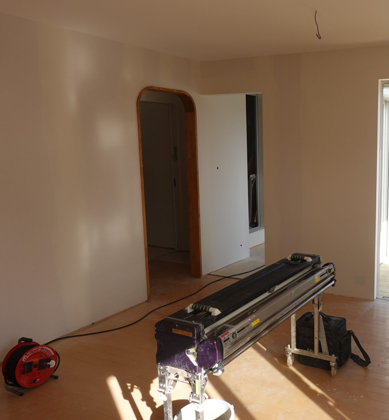 リビングからトイレとクローゼットに繋がるアール型の垂れ壁。壁の中身はこんな感じになっています。