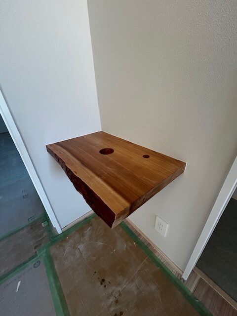 杉の一枚板を設えました。ちょっとしたところにも、本物の無垢板を使うことで、木の温もりを感じられます。 -