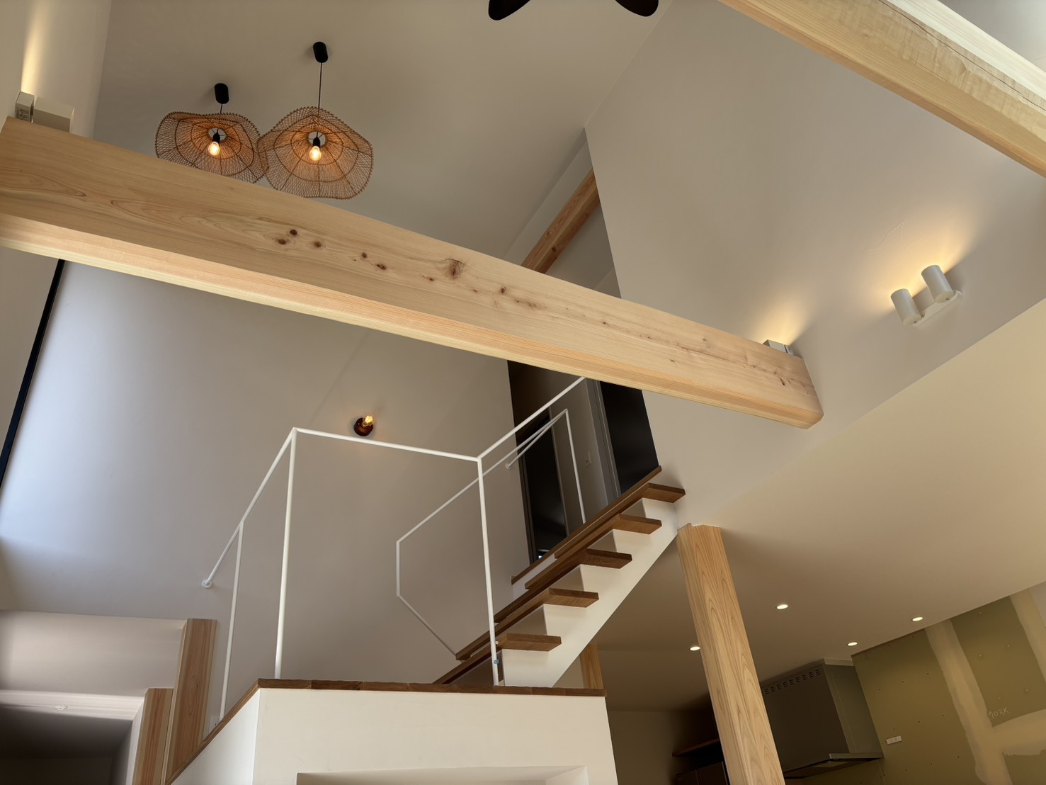 【竣工】2本のヒノキの梁