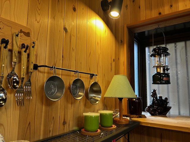 土間空間には大好きなランプをたくさん飾られていました。時々ランプに灯りをともし、