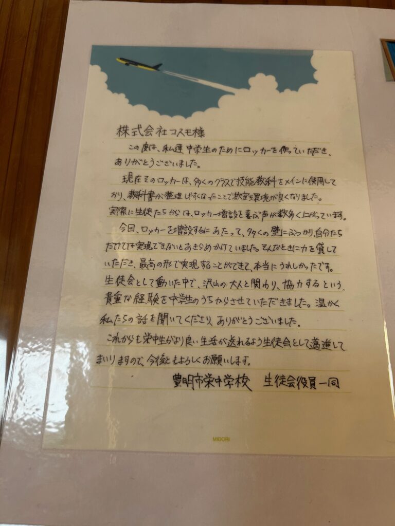 栄中学校の生徒会の方より、嬉しいお手紙もいただきました。