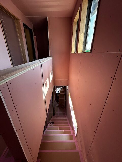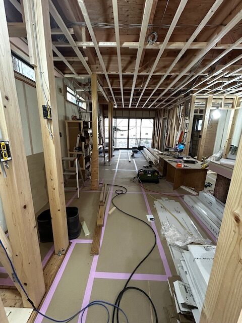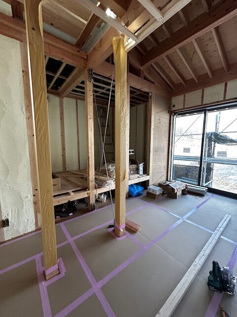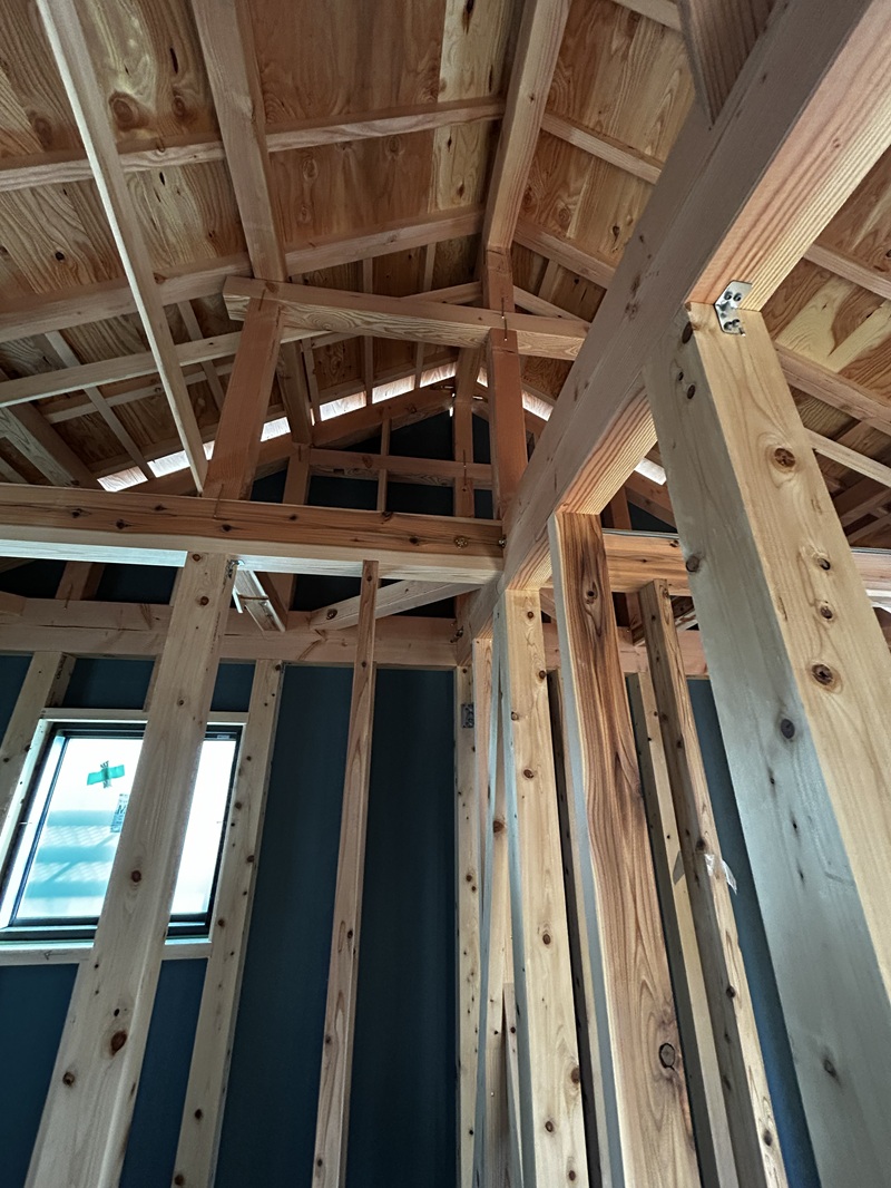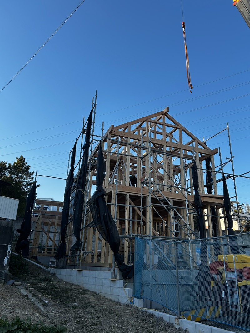 上棟を行いました。お天気にも恵まれ無事に執り行いました。住まいが平面から立体になり、新生活の実感が生まれてきます。 -
