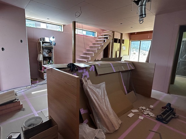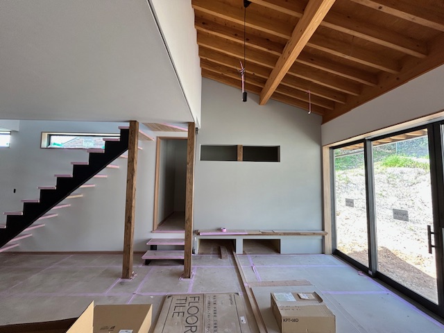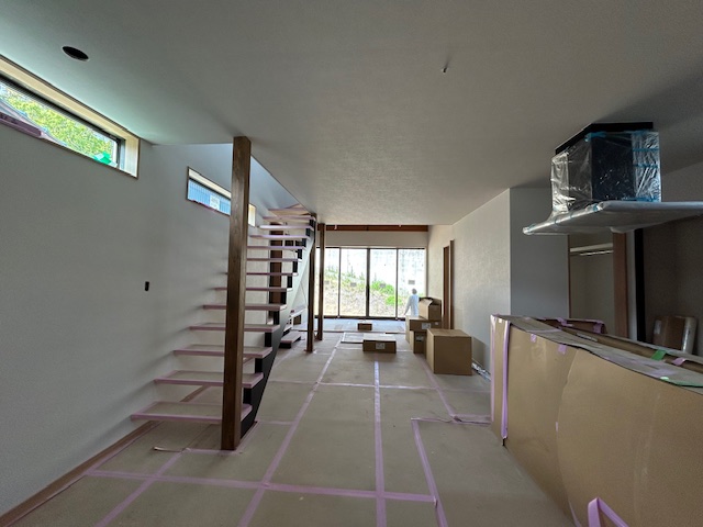 リビングの一角に小上がりのスペースを。階段を設置する予定で、籠り感を演出できるため、お子様の勉強スペースやご両親のお仕事スぺ―スにも活用できます。 -