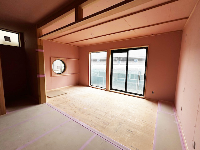 午前中には、2階の空間も出来上がってきました。平面で見ていた図面が立体になると、現実味が沸き、家づくりへの期待感が増してきます。 -