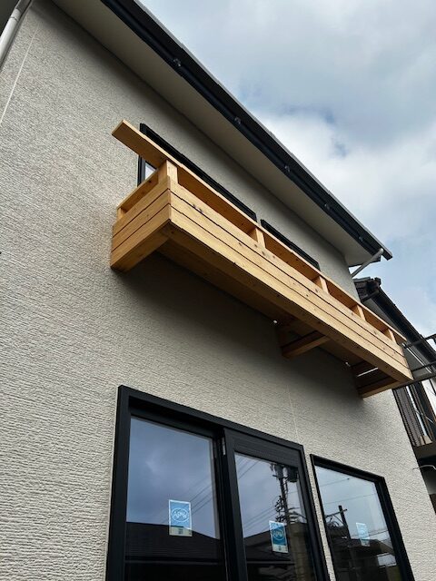 2階はベランダではなく、窓からつながる腰掛ベンチを設えました。高台に建つ家ですので、夏には夜空に上がる花火を楽しめます。