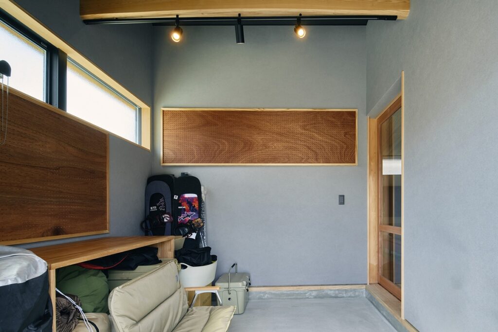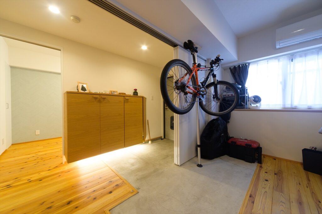 ・キャンプ道具や自転車を収納できる土間空間