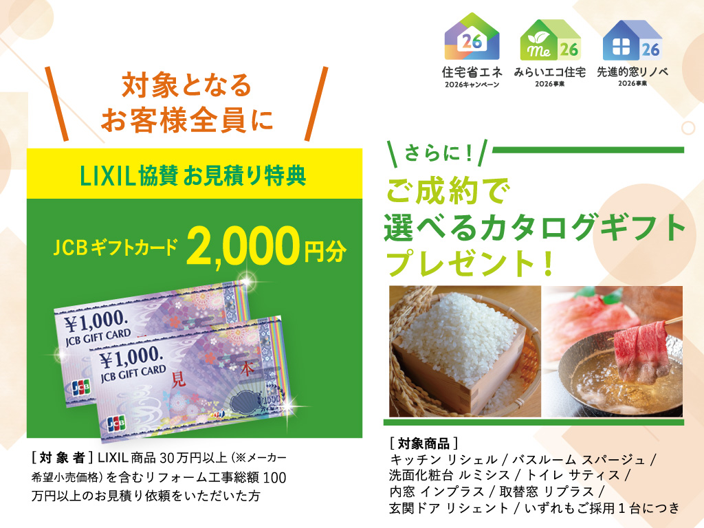 LIXIL商品30万円以上を含むリフォーム工事総額100万円以上のお見積り依頼をいただいた方