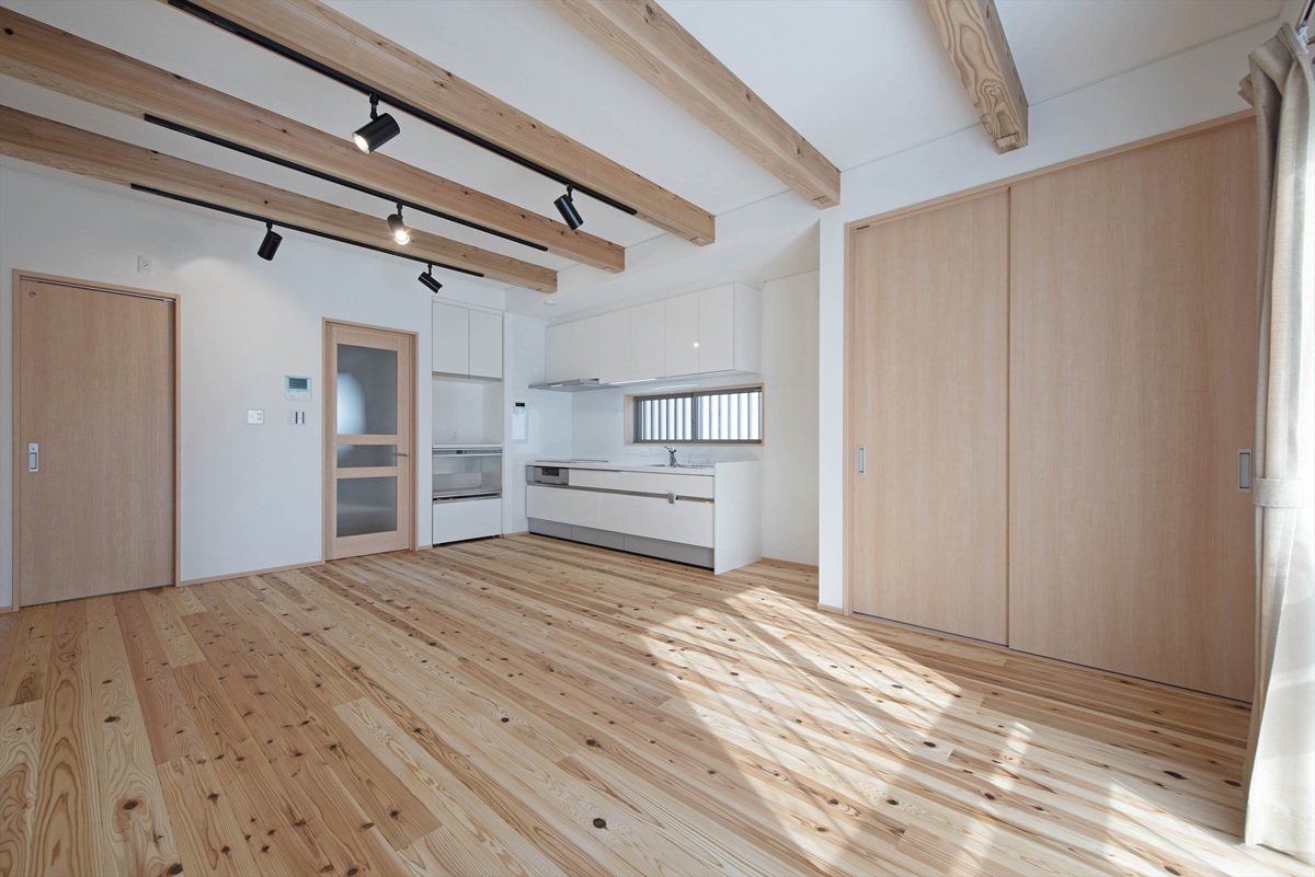 キッチンダイニングからつながる和室。引き込みタイプの引き戸を採用し、開ければひと続きの大空間に、閉じればプライバシーを守ることが可能です。