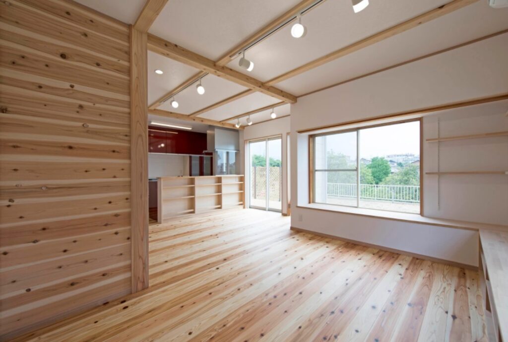 造作や板倉工法の壁など、本物の木をたっぷり使い木の温もりあふれる空間に。