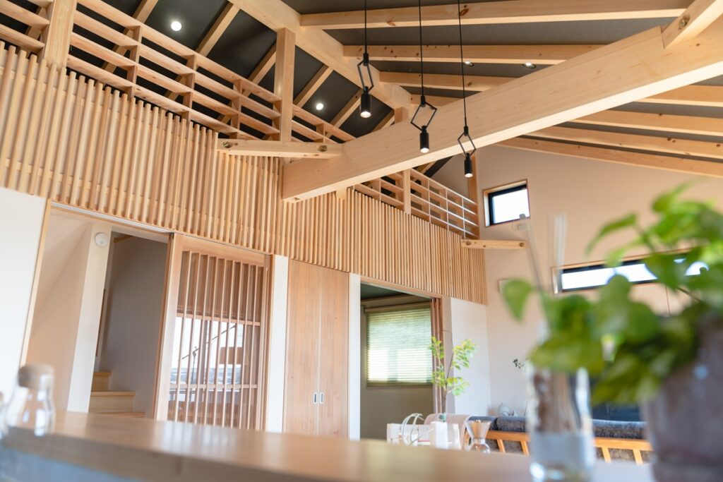 玄関を開けると心地よい檜の香りが迎えてくれます。木をふんだんに使ったリビングは、そこにいるだけで、まるで森林浴をしているかのような癒しを与えてくれます。