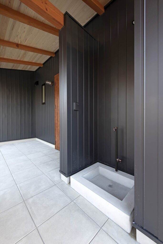• 玄関横の洗い場は、格子で目隠し 玄関横の洗い場は、格子で目隠し