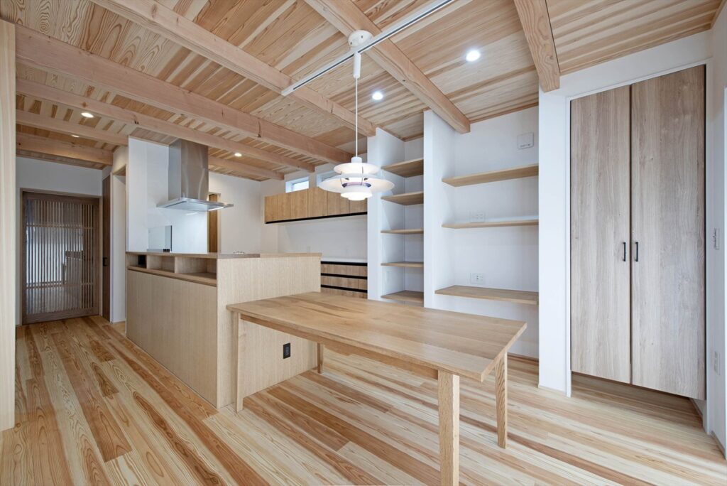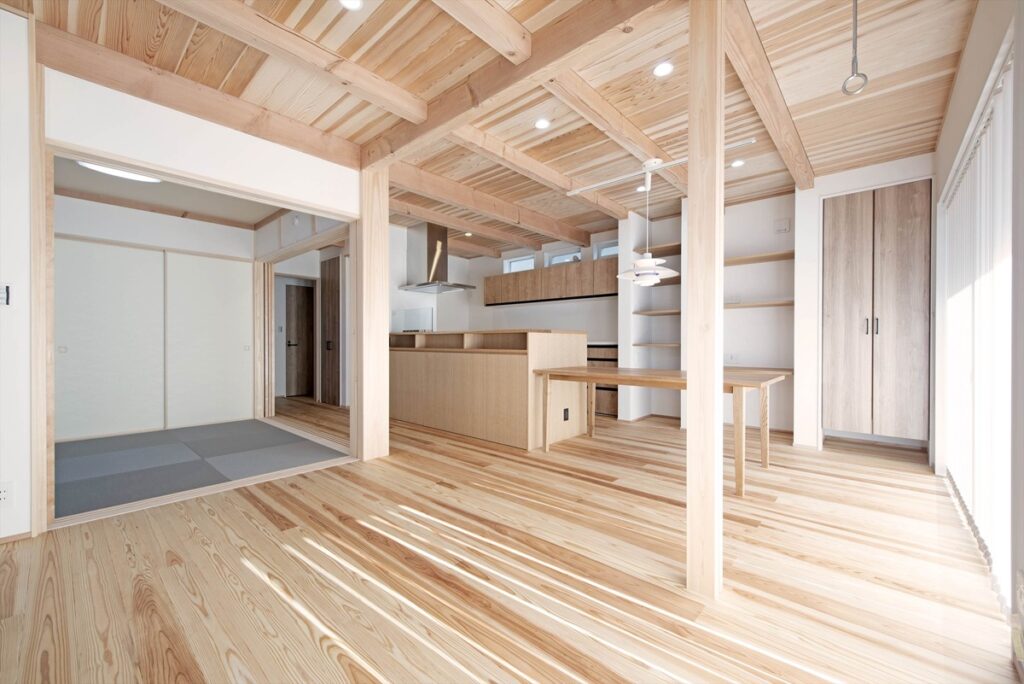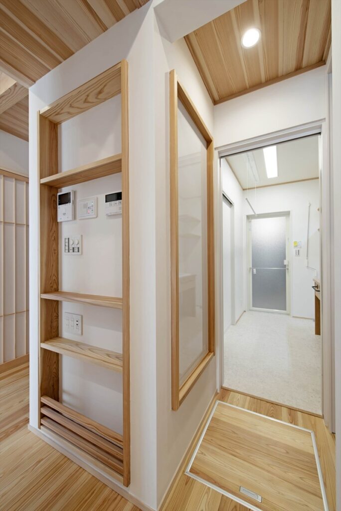 玄関を開けた瞬間に木の香りが広がります。木には断熱性や調湿性があるため、一年を通して温度差の少ない快適な環境で過ごすことができます。